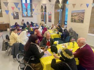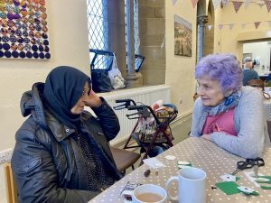 Our community café is open to the whole community every Monday providing a warm safe space and a range of free activities along with tea & toast. A hot drink and conversation is always available. We offer a range of craft activities from knitting to clay modelling. We have worked on a number of community art projects together, including ‘Gathered’ which hangs in the café space. Our Community Pantry runs alongside our Place of Welcome offering a low cost shop to those who need it. Once a month a couple of people take turns to cook for the group, we all enjoy the food that is made! Good friends are made through the activities we run and the group enjoy celebrating Christmas and Eid together, often with a bring and share meal.