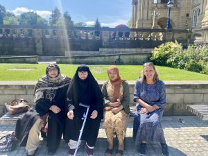 Our new weekly English conversation class provides an opportunity for women to practice speaking English in a safe and encouraging space. The class includes a monthly outing to practice speaking, such as ordering in a café or getting the bus together. Our trips have included Lister Park and a visit to Salts Mill.